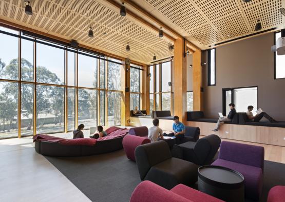 Engineered timber was included in the university’s development for many reasons, including the aesthetic appeal of our unique design, as well as the convenience of pre-fabrication and fast, economical installation. Engineered timber was integral to achieve the requirements of the design, with substantial column and beam sizes that would be near impossible to produce with raw timber pieces. Timber was also important for the project’s environmental conscience, with a combination of our timber frame with primarily timber interiors aligning with the client’s desire to incorporate natural materials such as wood into their project.