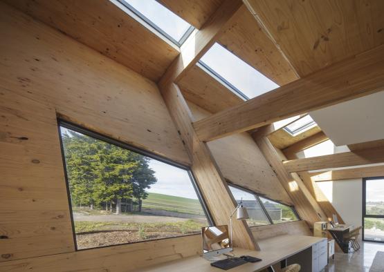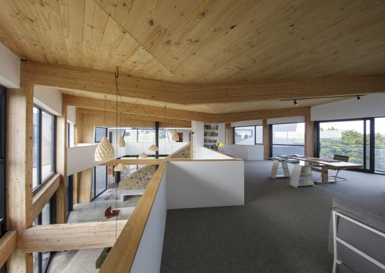 Not only is the building's form in tune with the natural world, but the mass timber structure uses plantation grown timber to create a strong structure from a natural and renewable source.