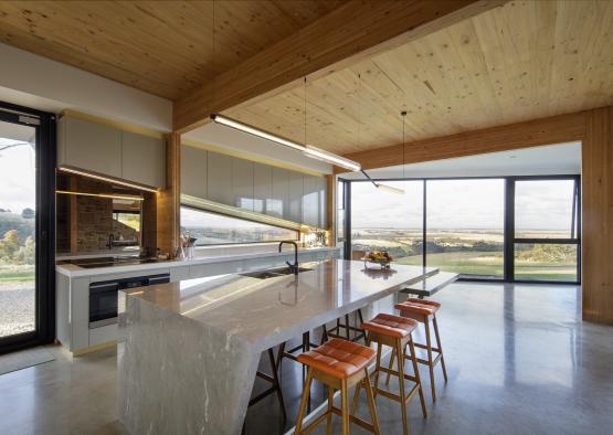 The total volume of 80m3 of CLT, 40m3 of GLT was used for the Royd Clan’s House. In meeting the sustainability goal, over 220m3 of timber was used throughout the property, which converts to a total of approximately 60,500kg of carbon sequestered from the atmosphere and stored within the timber. What’s more, the thermal performance of CLT also added great value to the property. Due to the thermal mass of CLT the temperature of the home remains stable throughout the day, keeping the home warm in winter and cool in summer, thus reducing energy usage and costs.