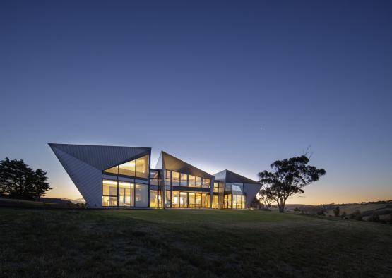 The angled nature of the walls not only creates an interesting space internally, and when overlooking mezzanines, but allows a minimisation of slab foundation in relation to internal space.
