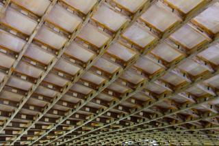 Most important is the high thermal insulation provided by the timber layers of the gridshell roof.
