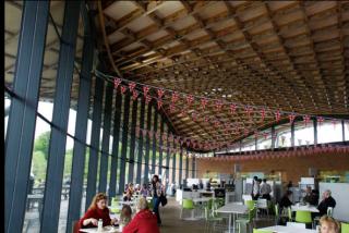 The beautiful, floating gridshell roof of the Savill visitor centre has done much to increase public use of the arboretum at Windsor Great Park near Virginia Water outside London.
