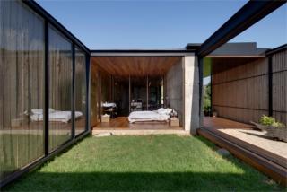 The master bedroom has one wall that is completely open to the outside, leading into a small private garden that can be enclosed by the verandah wall.