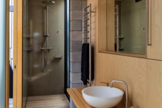 Accommodating the needs of two young, active sons – retaining a large lawn area was a must – as well as incorporating workshop and boat storage spaces into the scheme necessitated a high level of design innovation. For the owners this meant a lengthy negotiation with council, however, by challenging the established development controls, a large house – 380m² – including the aforementioned workshops and boat storage, has been packed onto a relatively small, 480m² site without any loss of amenity.