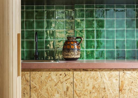 Internally, the renovation accommodates the owners’ personalities and objects they wanted to display, but had never had an appropriate space. Custom powdercoated thin steel shelving adjacent the dining area creates a home for their collections. McManus Lew Architects worked collaboratively with the owners’ and their material preferences to offer them their own unique sense of home.