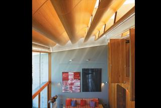 Ceiling coffer boxes allow winter light to enter the home while excluding the harsher summer sun. The factory-prefabricated boxes are identical, and lined with blackbutt veneer.