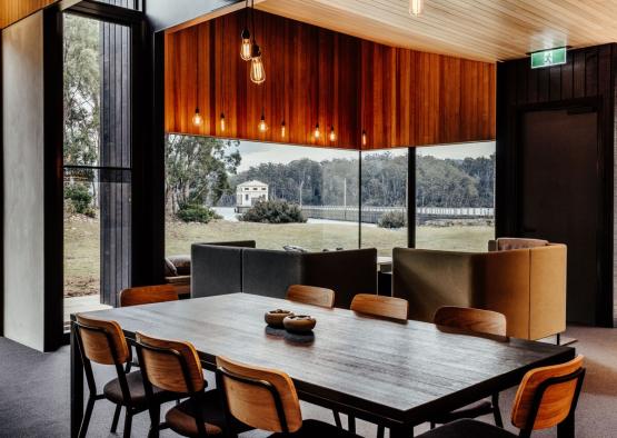 As the location is the star of the show at Pumphouse Point, gathering guests in a space that celebrates the context was the main goal. Carefully considered orientation and maximising glazing proved successful in generating an intriguing space for guests to experience Tasmania uninhibited.