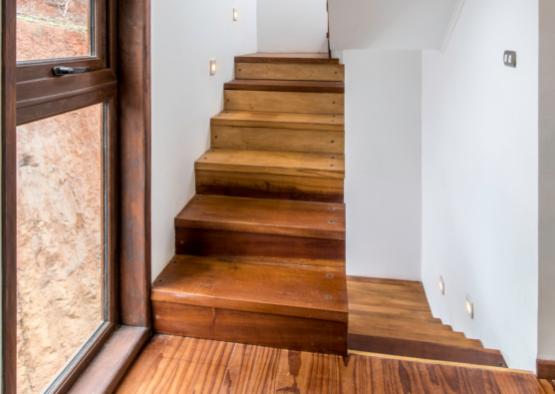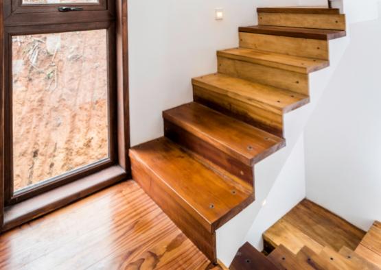 The interior sees wood used for all the floors and many walls, particularly those that face the exterior. In addition, actual native species were used for the staircase (Laurel) and for all exit doors (Elm). All the wood sourcing applied to this project has attained at the least a local forest certification.