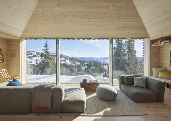 The cabin is located in Kvitfjell, Norway. The project marks the first start-to-finish project for architectural couple Casper and Lexie Mork-Ulnes, who work together as Mork-Ulnes Architects. The project is made even more personal for them by being designed for their family.