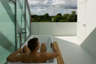Sliding House (uniquely) offers radically variable spaces and is a denial of static architecture. It is about the ability to alter the overall building composition and character according to season, weather, or a remote-controlled desire to delight.
