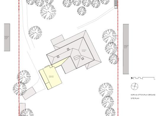 Sofia & Otto’s Playground is an environmentally sustainable modern Pavilion Addition to the existing white painted brick colonial house, which is contrasting in form, material and colour.
