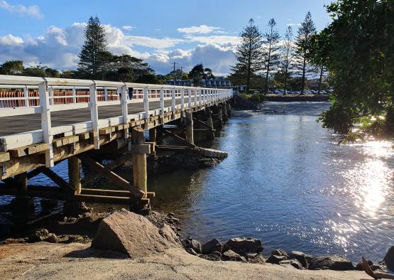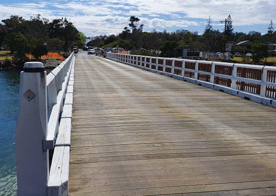 The South Arm Bridge has seven spans over a 63m length, at 6.15m wide.
