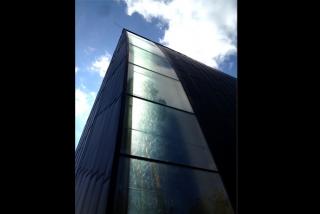 Almost no timber is visible from the exterior. Contrast is immediately created through this building. The singular exterior surface of copper is only penetrated through the occasional glass surface.