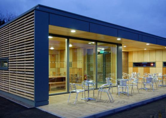 This project – a shortlisted ‘small project’ in the 2012 UK Wood Awards – comprises an extended 100-seat cafe, refurbished kitchen and cafe terrace. It is conceived as a learning aid in low-impact environmental design.