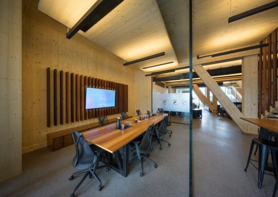The new head office for Strongbuild at their Bella Vista factory doubles as both workspace and showroom. Designed by Fitzpatrick + Partners, the space has been made to showcase the design potential for Glulam and CLT engineered timber. Strongbuild specialise in multi residential buildings made from engineered timber, so the choice to create an office that doubles as a showroom was an obvious one.