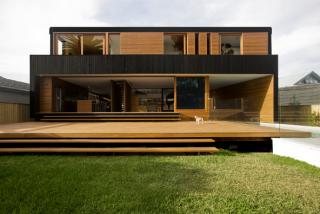 Architect Tai Ropiha, from Choi Ropiha Architects, chose a "calming palette of warm natural timbers" to assert "the connection the house establishes with the natural assets of the lagoon and island". Ropiha's design concept harkens back to the earliest ideas of suburbia as a retreat from the city.