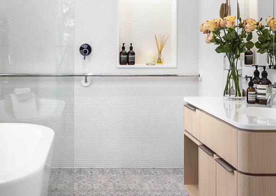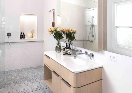 Moisture-resistant low-formaldehyde MDF specified to withstand the more extreme and humid ensuite environment.