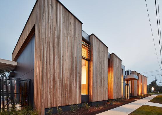 Timber was selected within the new McKenzie Street Aged Service Centre as a way of helping council continue their identity as a sustainably-driven community. k20 Architecture's design concept for the project is of clasping hands and the symbolism of this embrace aims to put aging people at the centre of the community. Timber is a natural product that connects people with the environment, and timber also captures memories and sensory experiences. All of the timber used in this project (externally and internally) is either FSC certified, locally sourced or recycled. Being a public building, it is important that the external aesthetic is approachable, and the use of timber facilitates this. The centre caters to the ageing population of Melton City Council, focusing on promoting inclusion within a range of available services and activities.