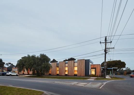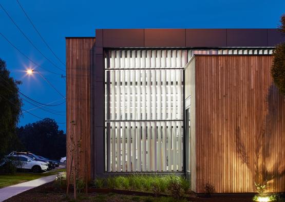 The timber used in this project was locally available and grown and has been sourced from FSC certified sources. Additional ESD Initiatives include passive solar design principles, use of materials with recycled content and/or from sustainably sourced local materials, solar array grid connected to offset electricity usage, zero VOC contained materials in the building, energy efficient electrical and water efficient fittings, allowance for connection to rainwater tanks and use of non-potable water to amenities, high performing acoustic treatment with acoustic lined wall finishes and acoustic ceilings for privacy of telephone calls as well as drought tolerant/hardy landscaping to building surrounds.