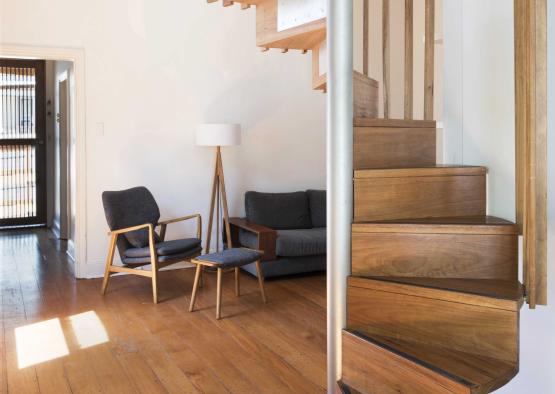 Furthermore, 90% of the flooring in the new development (the remainder of new flooring in the development is the tiled bathroom floor), and 70% of the new wall lining is FSC feature grade blackbutt tongue and groove flooring.