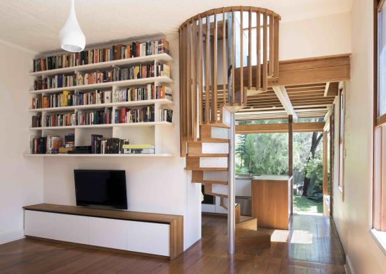 Joinery & Cabinetry: Book shelving and kitchen cabinetry, MDF, AFS F27 seasoned blackbutt, HMR particleboard w/ PU coating