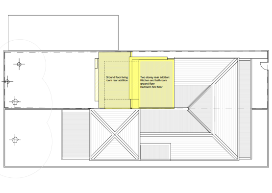 The windows to the ground floor addition are hand made fixed glazing units that face west, and bifolding units that face north. The windows to the first floor addition are sliding units designed so that sun and privacy screens can be accommodated to the outside of each.