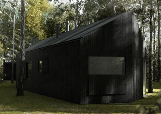 We designed an all-black house to be built amid the trunks of a forest of birch trees. The dwelling is entirely clad with dark Thermowood, lending the project a stealthy and brooding presence. We sought to place the house between the trees, while ensuring maximum exposure to the sun. Internal spaces are organized accordingly, brightly and naturally lit.