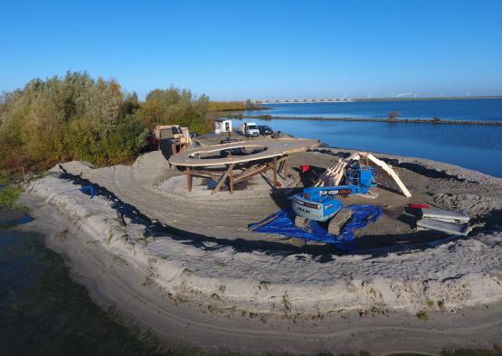 The egg shaped observatory gets its namesake from a Dutch wordplay joke. Tij is the Dutch word for tide, referencing the changing tides in its location - Haringvliet, but pronounced quickly, it sounds like the dutch word for egg. The designers ran with the joke and produced a beautiful ‘egg’, or sphere shaped wooden structure for viewing the surrounding coastline.