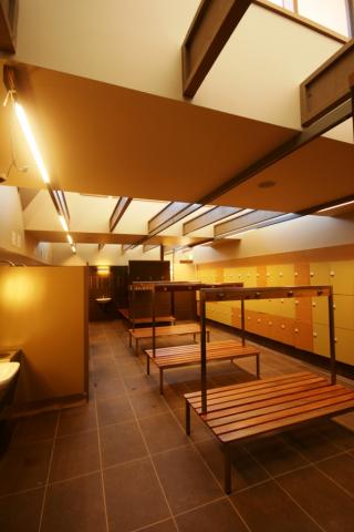 Important materials are warm timbers, such as Grey Ironbark and White Cypress pine, and stained ply, with colours resonating with the mood of the landscape and nature. In the change rooms these materials are complemented by ceramic tiles along with small and precious inserts of more sumptuous woods, tiles and metals. Natural light is carefully modulated for contrast, mood and view.