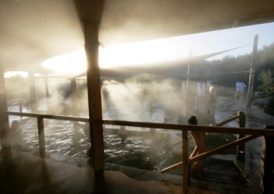 Visitors to the Hot Springs come there to give themselves a more harmonious sense of their bodies, and this intention is helped by the way the building, the landscape, and the springs stage a reunion of nature and culture, emphasised by the use of timber, and the particular rough textures of the timber in the columns.
