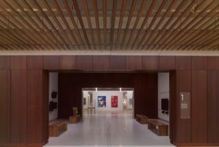 Jarrah is used as a feature timber in the public spaces, including the primary walls that mark the entrance to the galleries, the theatre and the board room.
