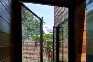 Tower House is a long-term family home and the boys will be adults when (if!) they leave. The house can easily adapt from being a shared family home to being two separate zones with distinct entries. Within the original house there are hidden sliding panels which allow the large shared rooms to be divided into smaller spaces. A variety of different activities can take place, whether shared or private; the best of both worlds.