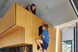 Hidden above the central console in the kitchen is a sneaky spot overlooking the dining and living areas. Lined in synthetic grass, it is a hideaway within the centre of the house.