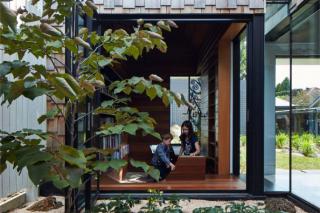 Increasingly our houses are overly concerned with privacy. Fences are getting higher, we are turning our backs to our neighbours and our houses are starting to look less like homes and gardens and more like compounds. Tower House tries to merge a secure home with a communal village. The front yard is now a communal vegetable patch, with the neighbours invited to help themselves and, if they wish, do a little gardening from time to time. The rest of the garden has a high fence around it; however it is possible to see through the fence and, importantly, the gates can be left open wide. With streets on both sides of Tower House, neighbours can use the garden as a short cut and grab a few veggies on the way through. With the gates wide open the line between public and private starts to get blurred.