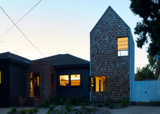 Tower House is near parkland and the Yarra River, with views to the Amcor chimney stacks. Tower House is bound by two roads; one a leafy post-war suburban street, the other, which faces onto backyards, feels like a rural country road. With the exception of a few new homes the context is small, humble weatherboard and brick abodes, meaning that a chunk of large contemporary architecture would be an imposition in this context.