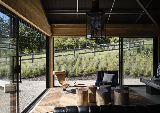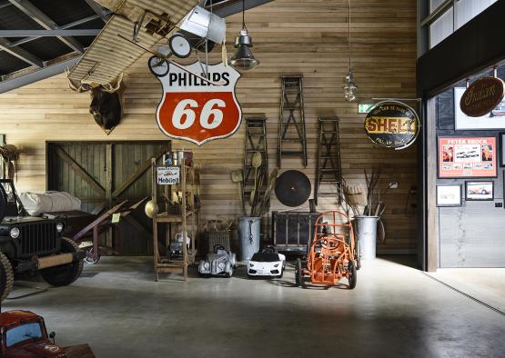 The resulting convergence of shed and home creates a giant volume. The extensive use of timber helps to make the space feel like part living room, part museum and part working space. It’s a place for entertaining, viewing nature, and it's endlessly adaptable. The colour and feel of the variety of timber linings used compliment the palette of timbers in the surrounding bush lands. The combination of eccentric furnishings and objects and timber lined interiors make the space almost feel like an old cattleman’s hut.