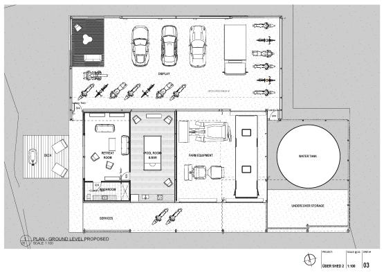 The interiors of the Über Shed 2 were driven by the need for hard-wearing materials, suitable for use as a storage and agricultural building. This is combined with the aesthetic requirements and tastes of the client and the design intent for the building to blend into the beautiful native rural Australian setting. The combination of timber, plywood and exposed galvanised steel framing,  creates an internal visual framework that blends with the rural setting beyond.