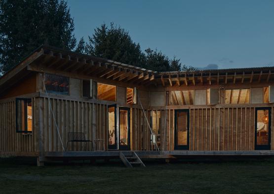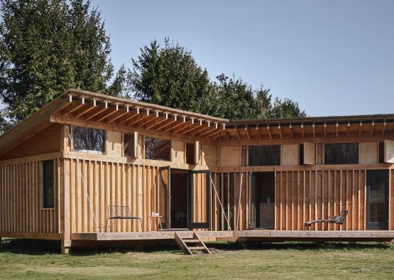 Timber was the desired material for both structure and cladding from the outset. The project was centred around quick erection, and the ability to build with minimal labour. After researching species viability, Douglas fir became the most suitable species that could achieve the durability, price and local supply aims of the project.