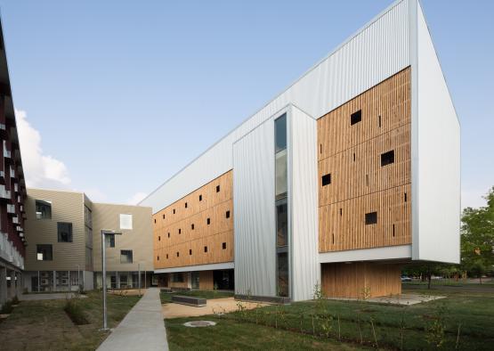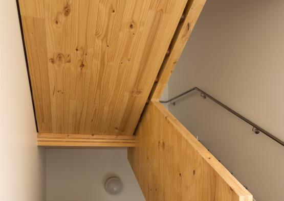 Structural CLT was used for the floors of the Common Rooms (which in turn became the ceilings of the common rooms below each), walkways to the apartments, and to the stairs. LVLs were used for floor joists and ceiling joists to the modular apartments.