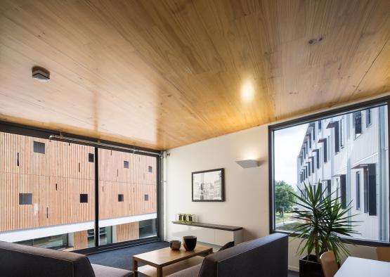 To satisfy the appearance criterion required, the CLT was exposed on the underside of ceilings and in the stairways. As a new and unique product, the CLT was exposed in these locations to show off its use as a sustainable material and to achieve the visual warmth that natural timber imbues in the Common Rooms.
