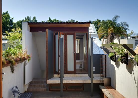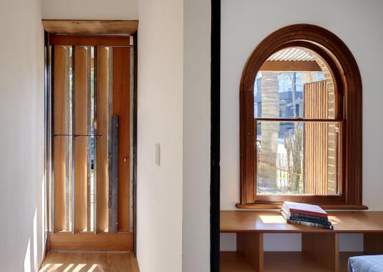 David Mitchell Architects has made a conscious decision to maintain a low-embodied energy level throughout the job, which, when it came to doors and windows, meant that the choice of timber over aluminium (specifically Australian timber or sustainably grown timber) was essential. In favour of good aesthetic and longevity, raw materials were used wherever possible. Timber doors and windows, especially in the suburban area relatively protected from the elements, served as the best choice.
