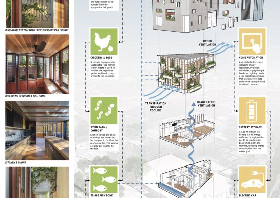 The residential project acts as a beacon for sustainability within its community, where landscape, food, nature, garden, environment, energy, waste, water and architectural aesthetic exist symbiotically.