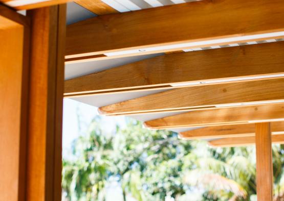 In the Whyte House, external timber is either painted white to reduce the effects of temperature variation on the timber and prolong the lifespan of the wood or made from teak, known for its endurance and stability.