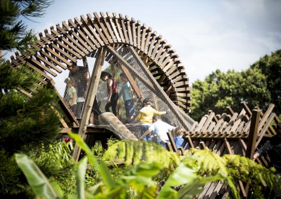 The goal was to combat an increasingly large percentage of young children having an unhealthy lack of exposure to the outdoors. Timber provided the perfect natural material to work structurally, but also to discreetly fit into the environment in a natural way. Timber also resonated perfectly with the idea of a play space, given its textural quality.