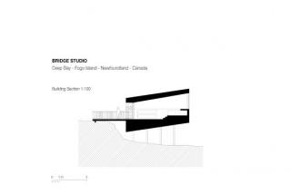 The first impression of the Bridge studio is its abstract nature. From the side elevation it appears as a windowless, wood-clad parallelogram propped up by four piers and connected by a 5 m bridge to the adjacent hillside. In fact, the 30-m2 studio has a generous glass entry and a large, square window at the other end of the room.