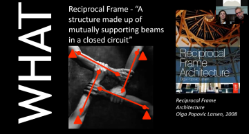 Reciprocal Frames are a method of providing structural support with mutually supported beams in a closed circuit. Reciprocal frames have been used in timber structures for centuries, as one of the most ingenious solutions to get “more from less”. The frames allow for 2-way action, geometric complexity and achieve longer spans. The speakers will present a brief history of their use, explain their benefits in modern designs, and illustrate 2 calculated examples of application.